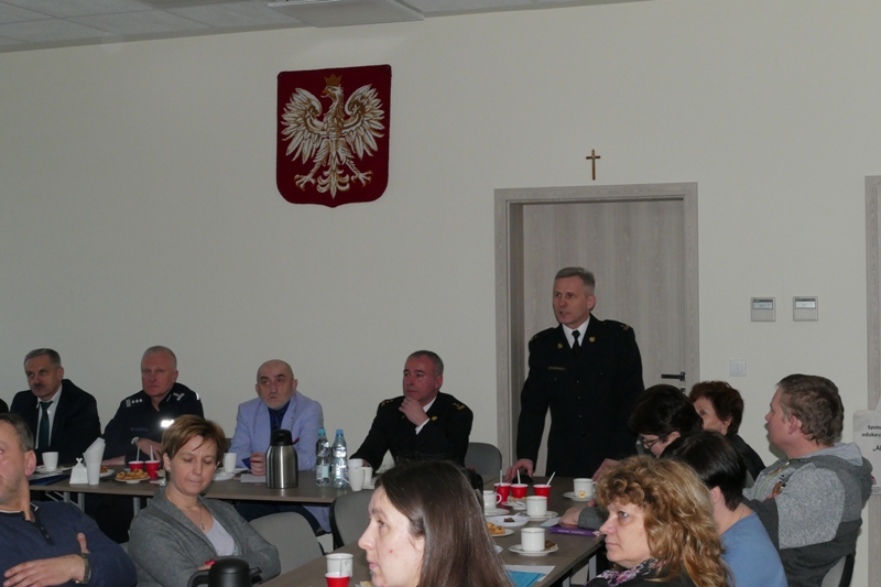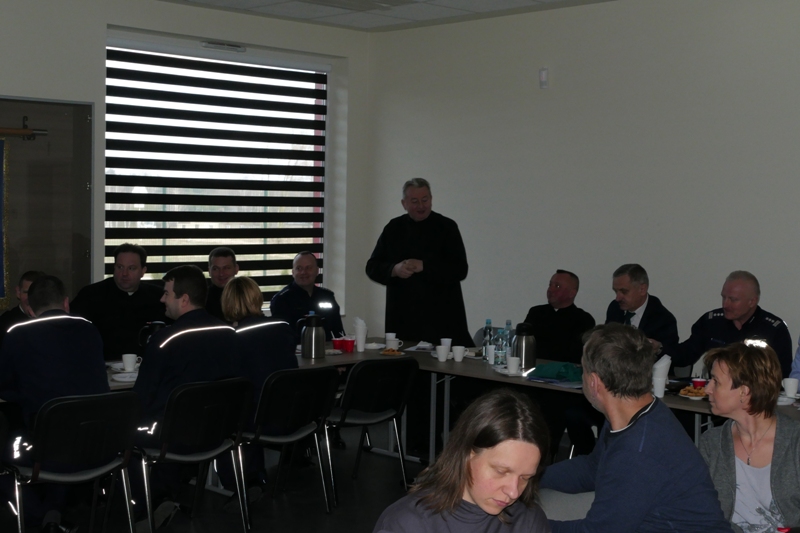 Na wstępie podkom. Tomasz Żaczek powitał zaproszonych gości. Następnie komendant C. Petrus przedstawiając prezentację multimedialną przybliżył tematykę debaty , m.in. zagrożenia kryminalne dla osób i obiektów kościelnych , zagrożenia związane z terroryzmem i niewłaściwym korzystaniem z internetu. Komendant C.Pertus podziękował za dotychczasową współpracę . Zwłaszcza wspólne działania w zakresie bezpieczeństwa osób starszych ( np. oszustwa na wnuczka ) w tym odczytywanie z ambon listów profilaktyczno- ostrzegawczych zostało ocenione jako bardzo pomocne i prewencyjno -istotne. Również działania w zakresie bezpieczeństwa w ruchu drogowym m.in. obdarowywanie, zakupionymi przez Starostwo Powiatowe , kamizelkami i torbami z elementami odblaskowymi - na terenie kościołów - zostały określone jako bardzo społecznie przydatne. Takich przykładów współpracy jest wiele. Dobrze to świadczy o współpracy dla dobra mieszkańców - parafian.