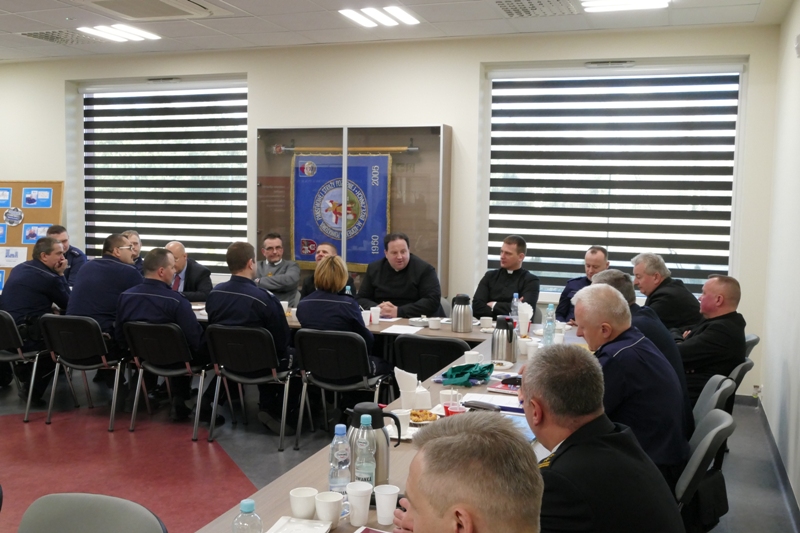 W kolejnej części przyszła kolej na strażaków PSP w Brzezinach. Po wstępnie pana Komendanta D. Guzka , głos zabrał mł. bryg. M. Kaczmarski, który wskazał na aspekty zabezpieczenia p-poż obiektów sakralnych oraz przybliżył akcję "Czad i ogień – obudź czujność”.